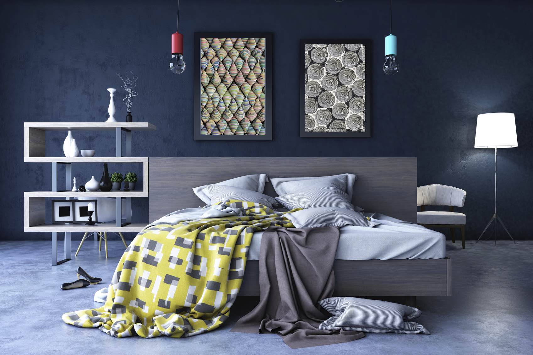 If you want to be truly creative, why not use a second-hand suitcase as a nightstand? Add a touch of wicker or rattan to break up the colour and add some earthy tones into the mix.