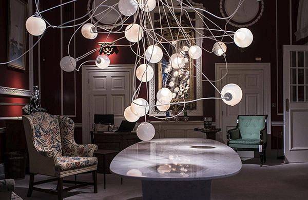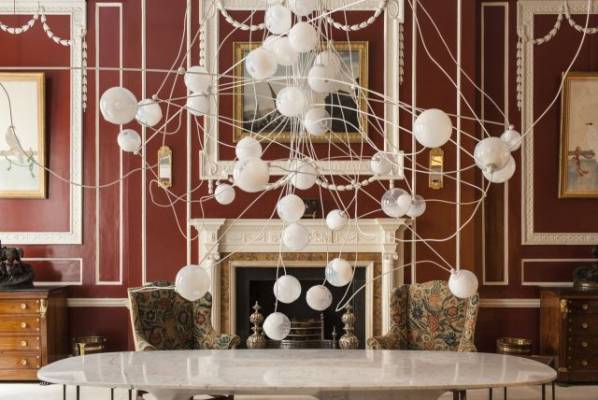 The Canadian brand created a stunning installation in collaboration with Mallet Antiques at their Ely House Gallery. The 57 series is used space to a truly magnificent effect, cascading down the centre of the staircase, whilst the 38 series in white with powder coated copper wire looked amazing draped over the Klauser & Carpenter marble table. The contemporary lights mixed with unique, antique furniture really showed how the old and the new can work together in harmony.